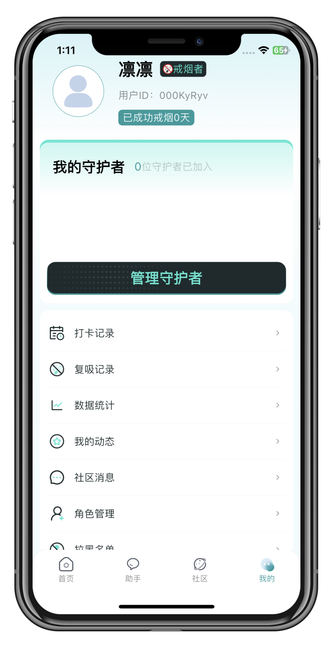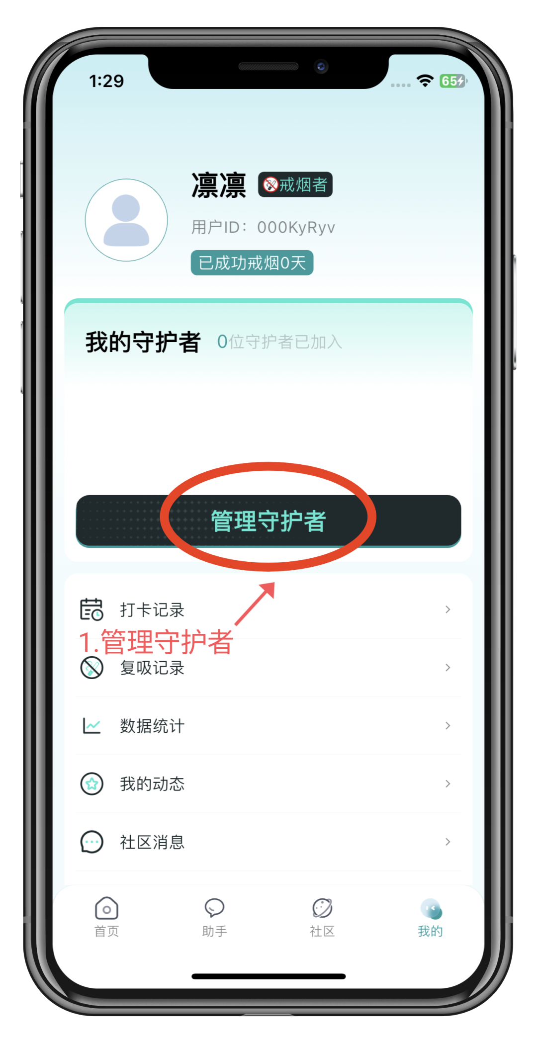 守护者复制自己的用户 ID发给戒烟者