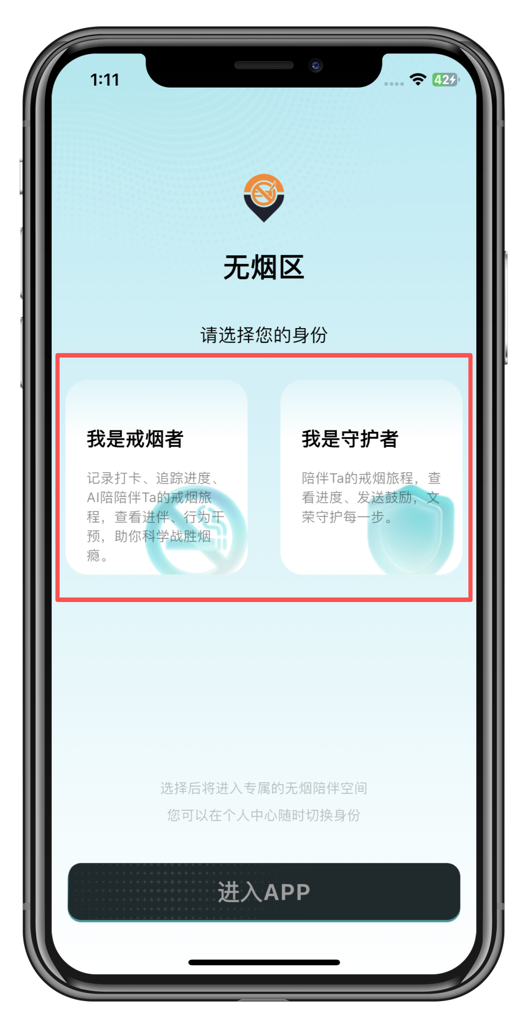应用商店搜 「无烟区」,选择身份: