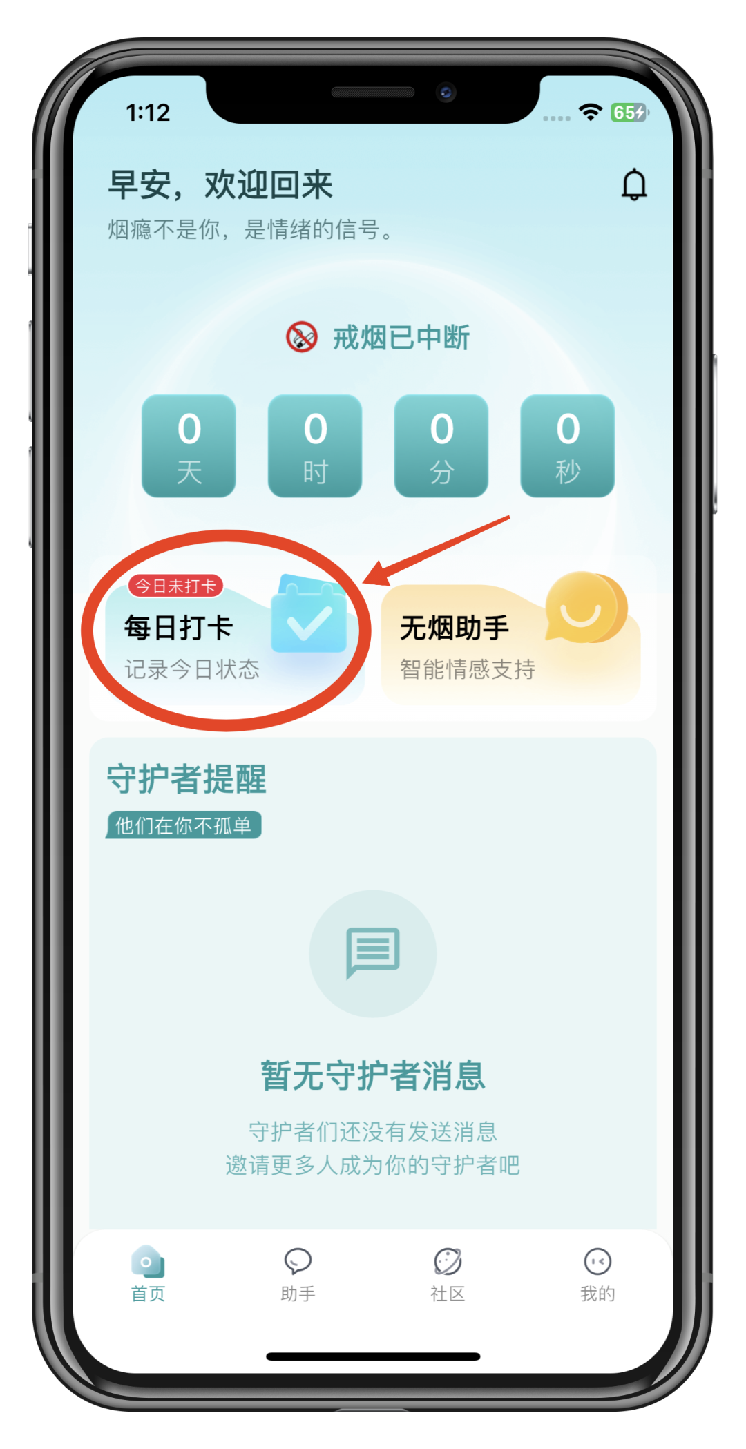 首页:每日打卡,让坚持被看见;守护者提醒,让陪伴不孤单